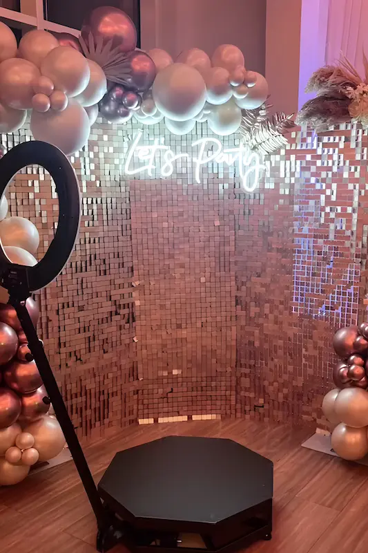 Fotomatón 360 para fiestas que convierte cada giro en un recuerdo espectacular.
